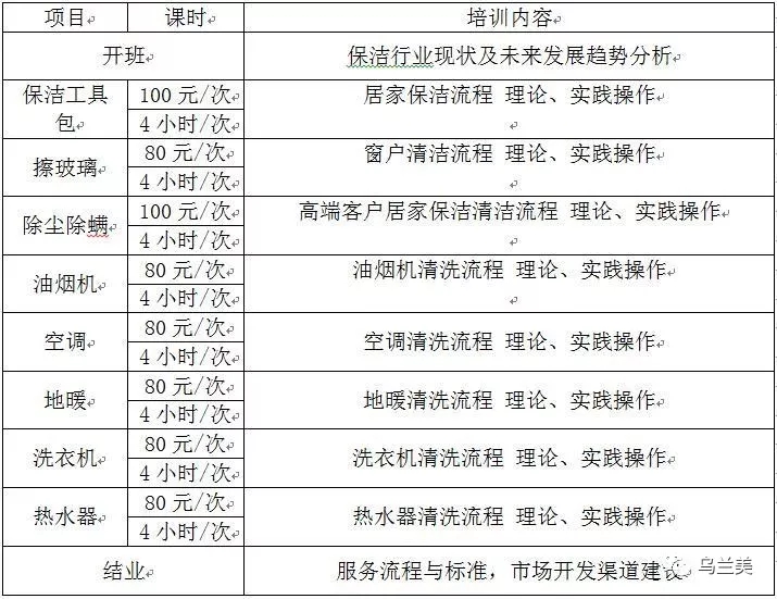 根據(jù)目前家政保潔市場需求及社會人員就業(yè)需要,經(jīng)公司研究決定,烏蘭美將推出家電清洗保潔培訓(xùn)班。通過家電清洗保潔培訓(xùn)班提高從業(yè)人員行業(yè)的操作專業(yè)水準(zhǔn),更好的為我市市民提供優(yōu)質(zhì)的服務(wù)。